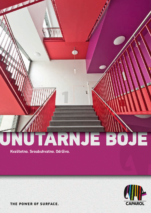 Jači intenzitet boje, više elegancije, zdrava klima životnog prostora, više čistoće ili veća sigurnost. Caparol ima odgovarajuće rješenje za svaki od navedenih zahtjeva. Naš proizvodni asortiman nudi vam prvoklasne unutarnje boje pomoću kojih možete svladati svaki izazov koji se odnosi na visokokvalitetan dizajn površina. Ne bitno radi li se o projektima u privatnom, javnom ili komercijalnom sektoru.